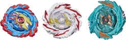 - 3 BEYBLADE BURST COMPETITIVE BATTLING TOPS: Includes Beyblade Burst Surge Speedstorm left-spin Abyss Devolos D6, right-spin Demise Satomb S6, and left-spin Mirage Helios H6