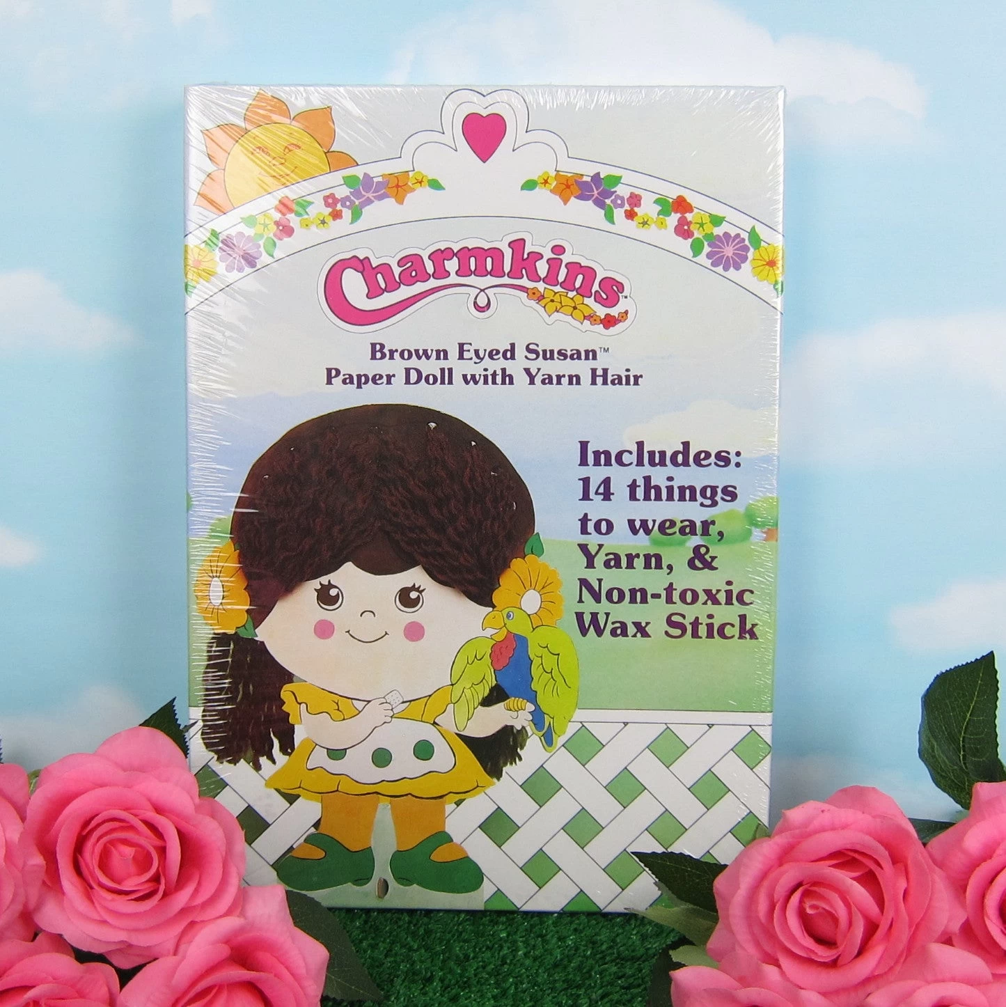 This vintage Charmkins paper doll boxed set includes a paper doll of Brown Eyed Susan and 14 things to wear. The paper doll set is unused and is still sealed in its original box.Â
