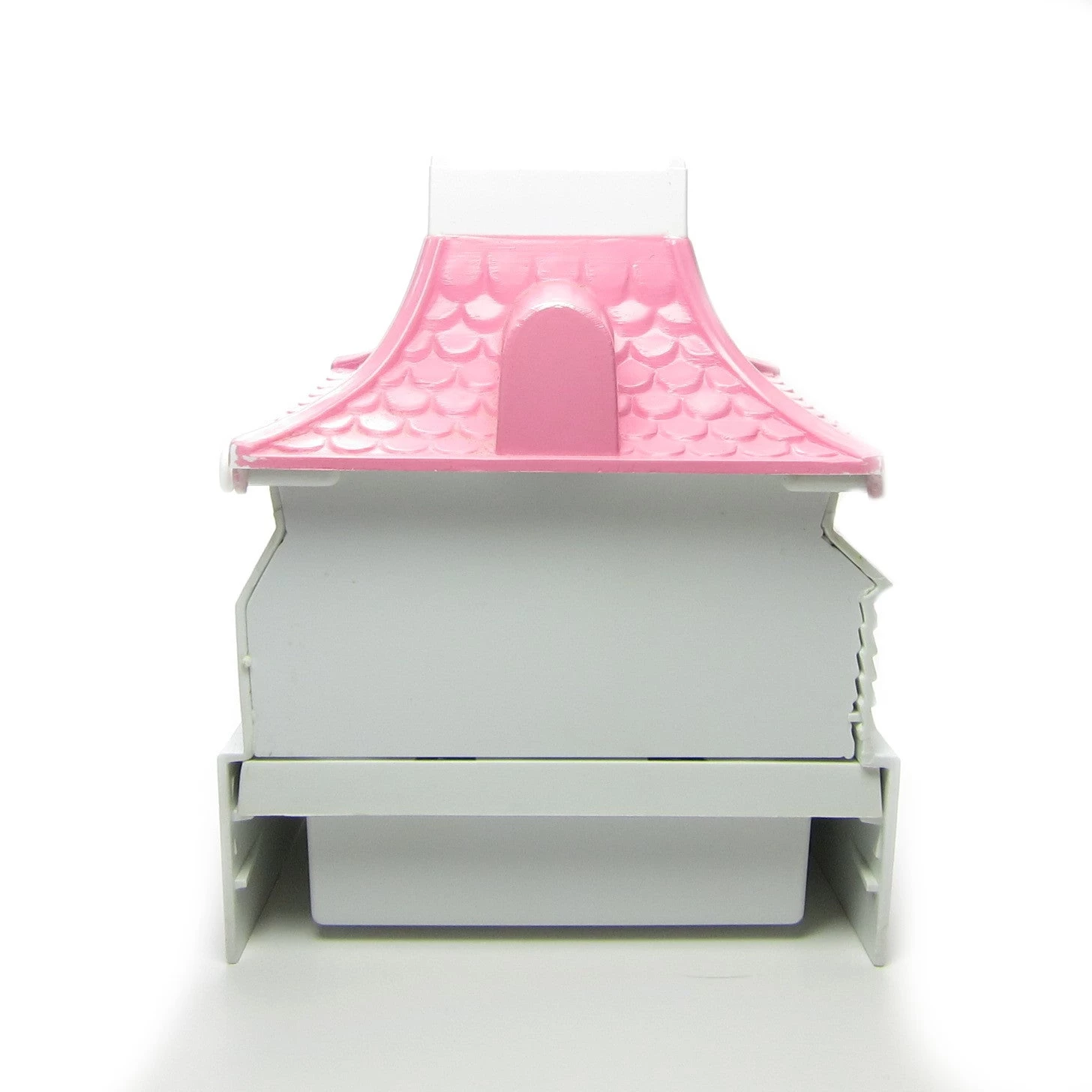 The front of the house has stickers on it, there’s a Charmkins logo above the door, Brown Eyed Susan coming out the front door, and Poppy the Cat and Lil Tulip outside the house. The house shows some wear but would be a fun piece to have on display in your Charmkins collection!