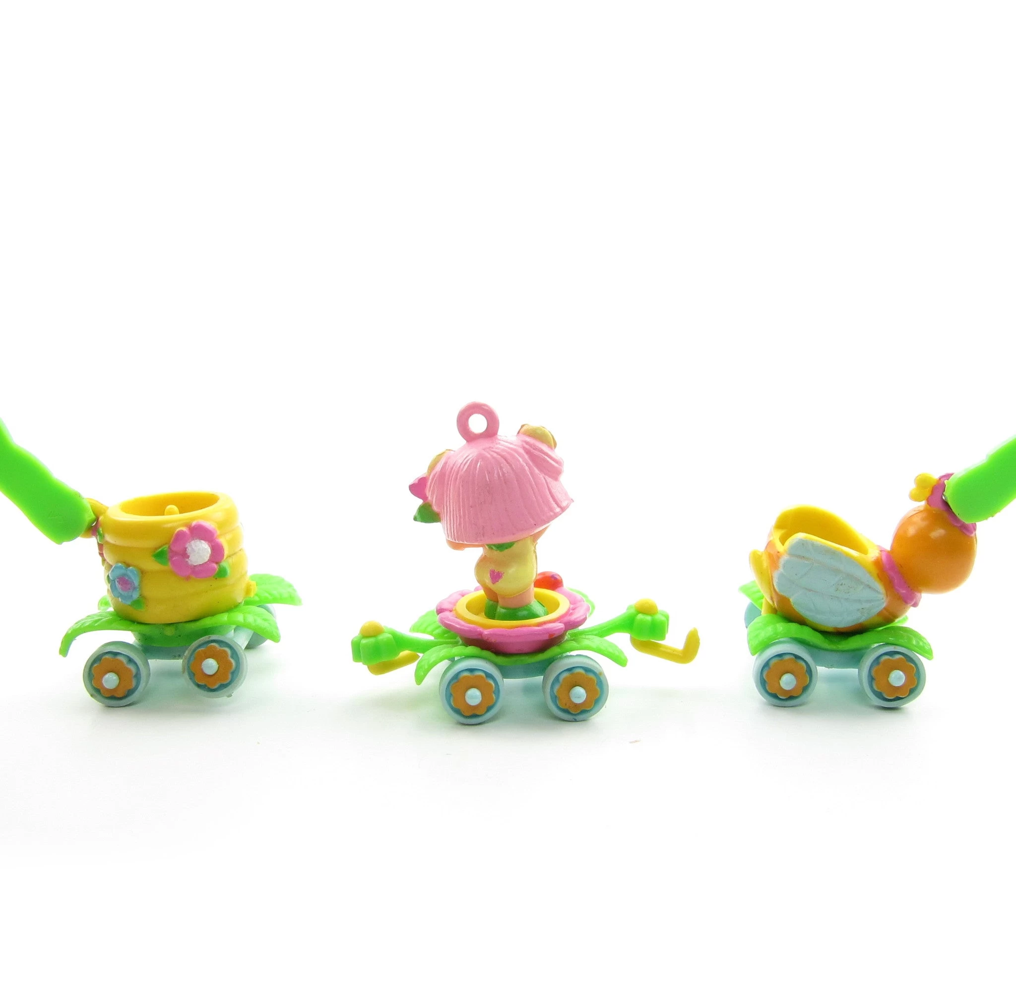 Except for the broken links between the train pieces, the Sweet Bea charm and other pieces are in good vintage condition with minimal paint rubs and wear.