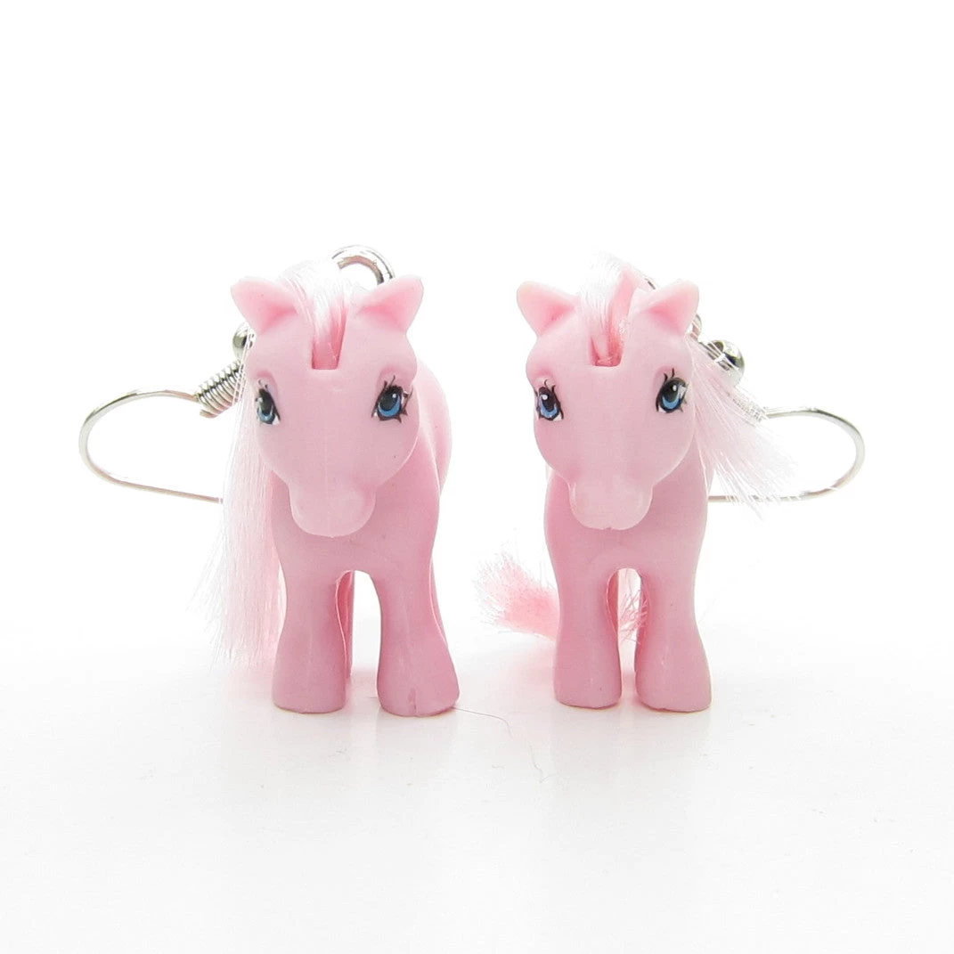 These handmade My Little Pony earrings feature miniature versions of Cotton Candy on nickel-free ear wires. The earrings are made from the World’s Smallest My Little Pony toys from 2018. Each pony is just 1 inch (2.5 cm) tall!Â