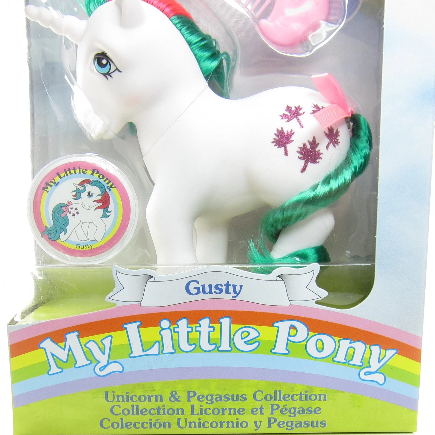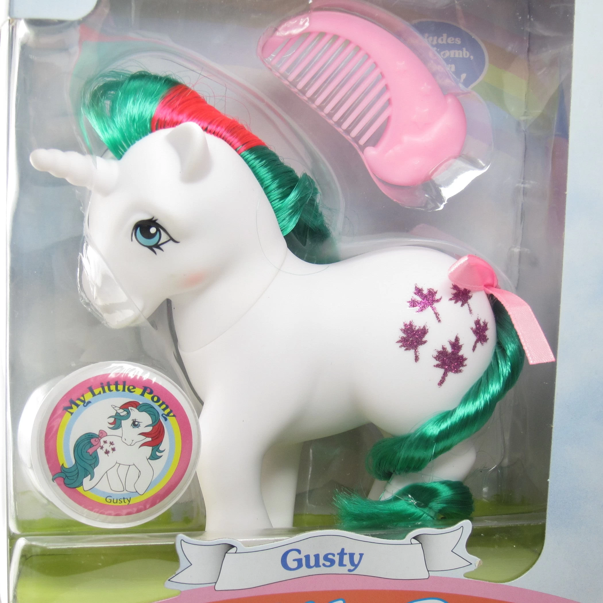This My Little Pony toy is the Classic Reissue version of Gusty produced in 2020. She’s from the Unicorn & Pegasus Collection and looks just like the version released in Year 3 of the original My Little Pony line.Â