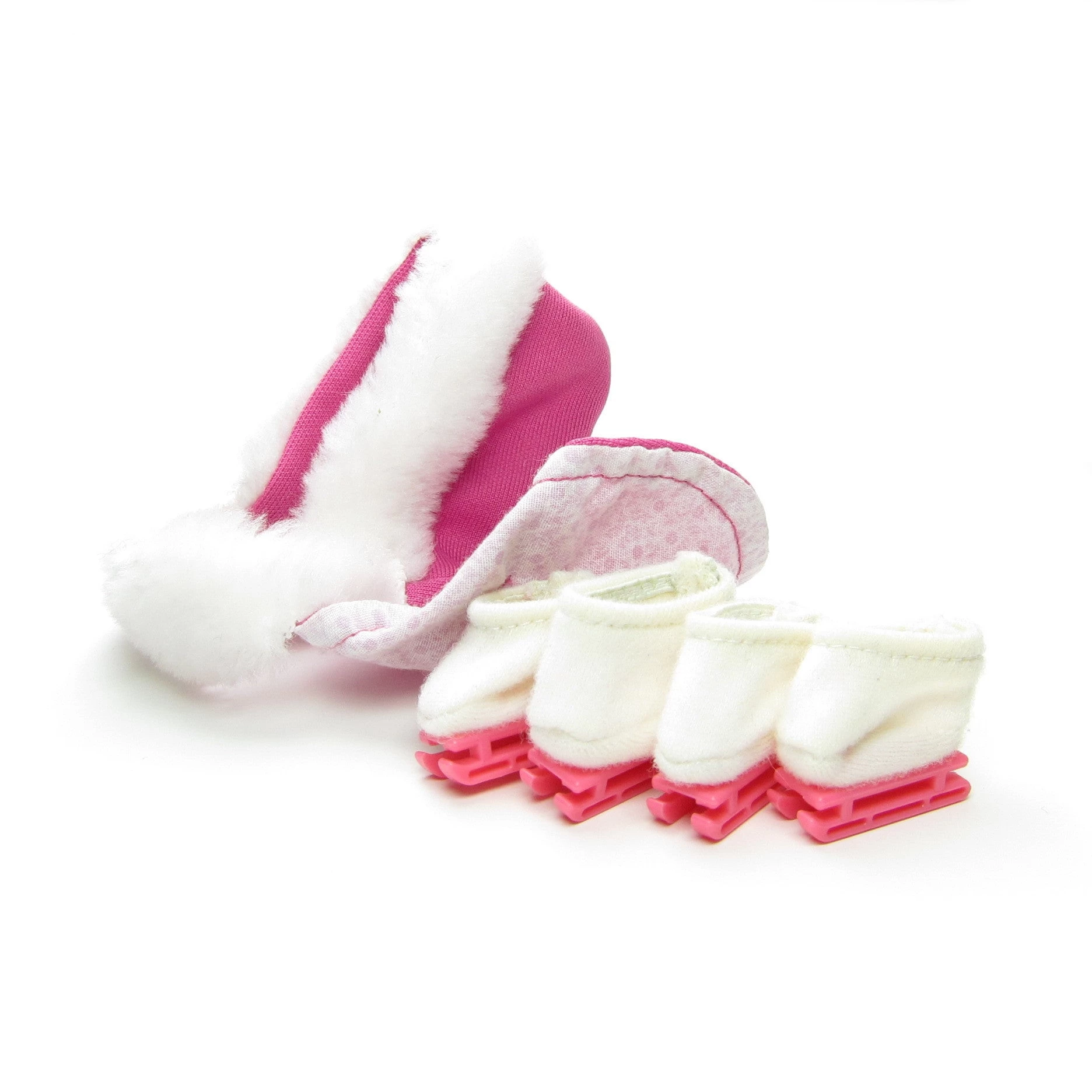 The ice skates show some yellowing on the white fabric, but the set is otherwise in good vintage condition.