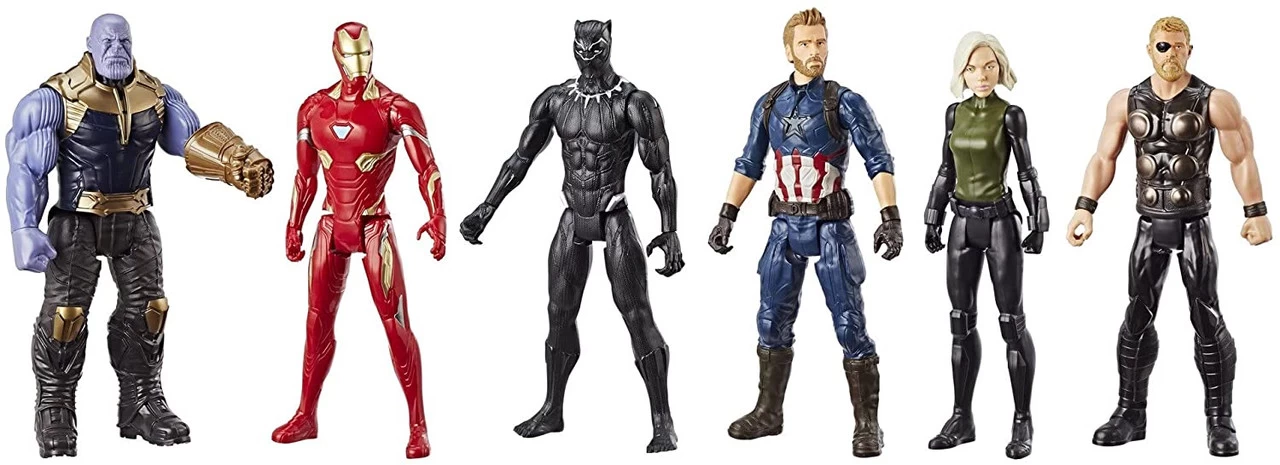 - Imagine the Avengers taking on the evil Thanos with the 12-inch scale Captain America, Black Panther, Iron Man, Black Widow, Thor, and Thanos figures from the Titan Hero Series, inspired by the Marvel Avengers: Infinity War movie.