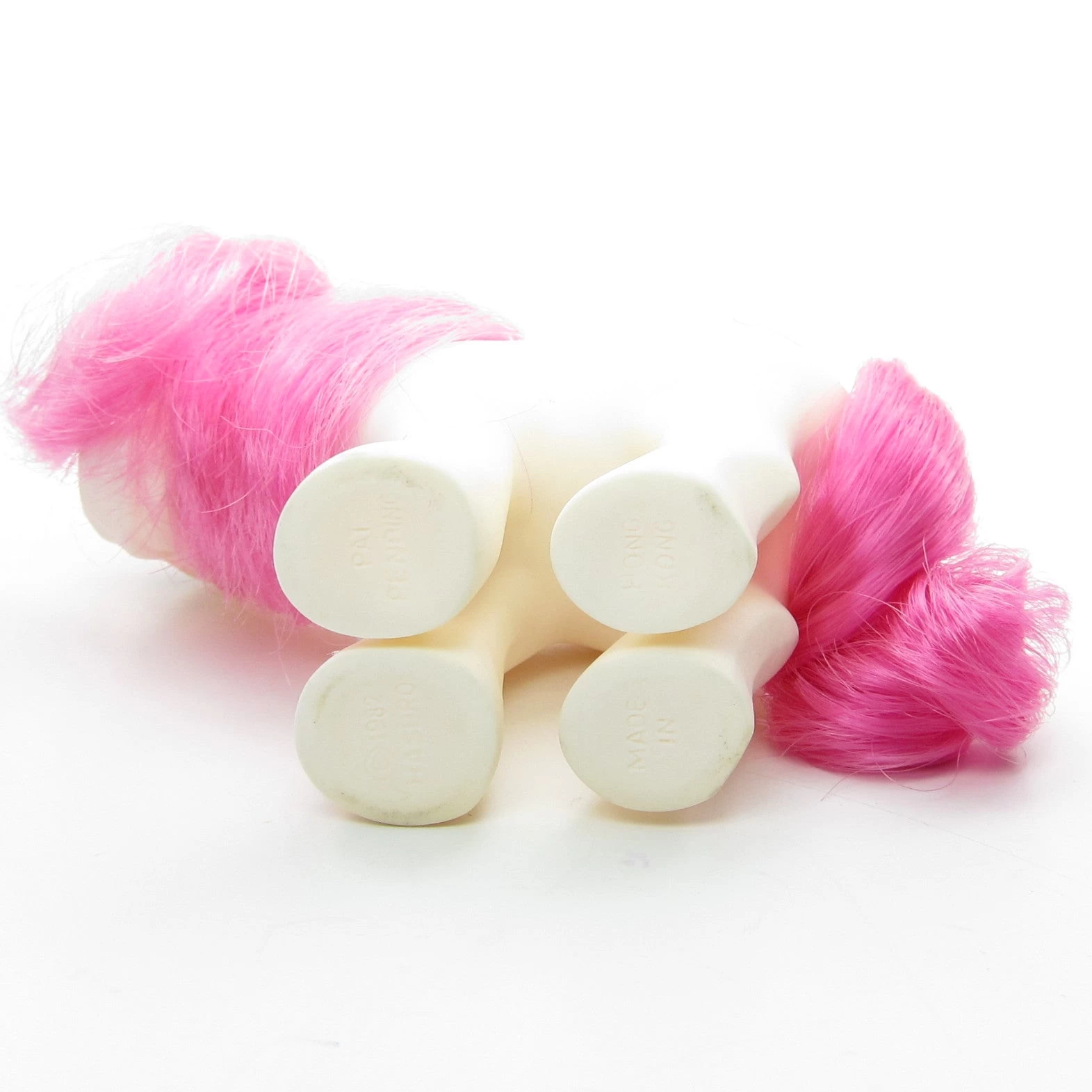 This vintage My Little Pony is Carnation, she’s the Birthflower Pony for the month of January. She’s a white Earth pony with a bright pink mane and tail and purple eyes. Her symbol is a pink carnation, January’s birth flower.