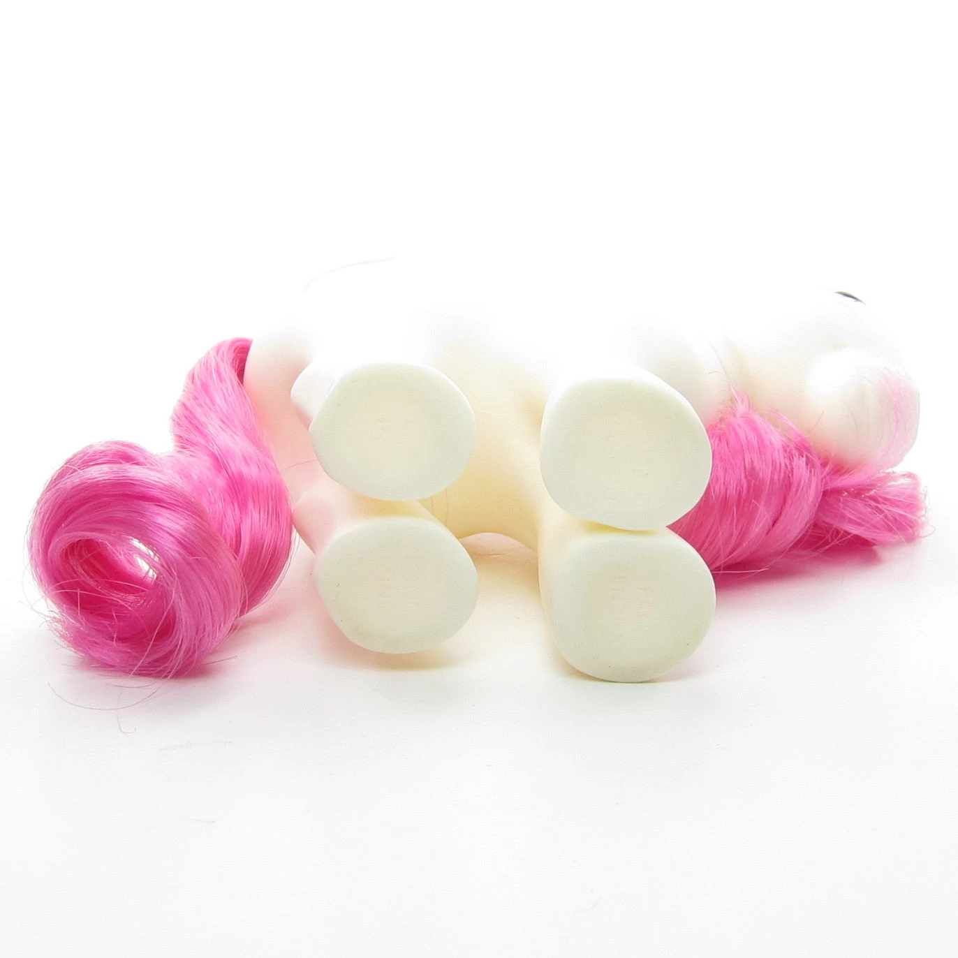 This vintage My Little Pony is Daffodil, she’s the Birthflower Pony for the month of March. She’s a white Earth pony with a bright pink mane and tail and purple eyes. Her symbol is a pink daffodil, March’s birth flower.