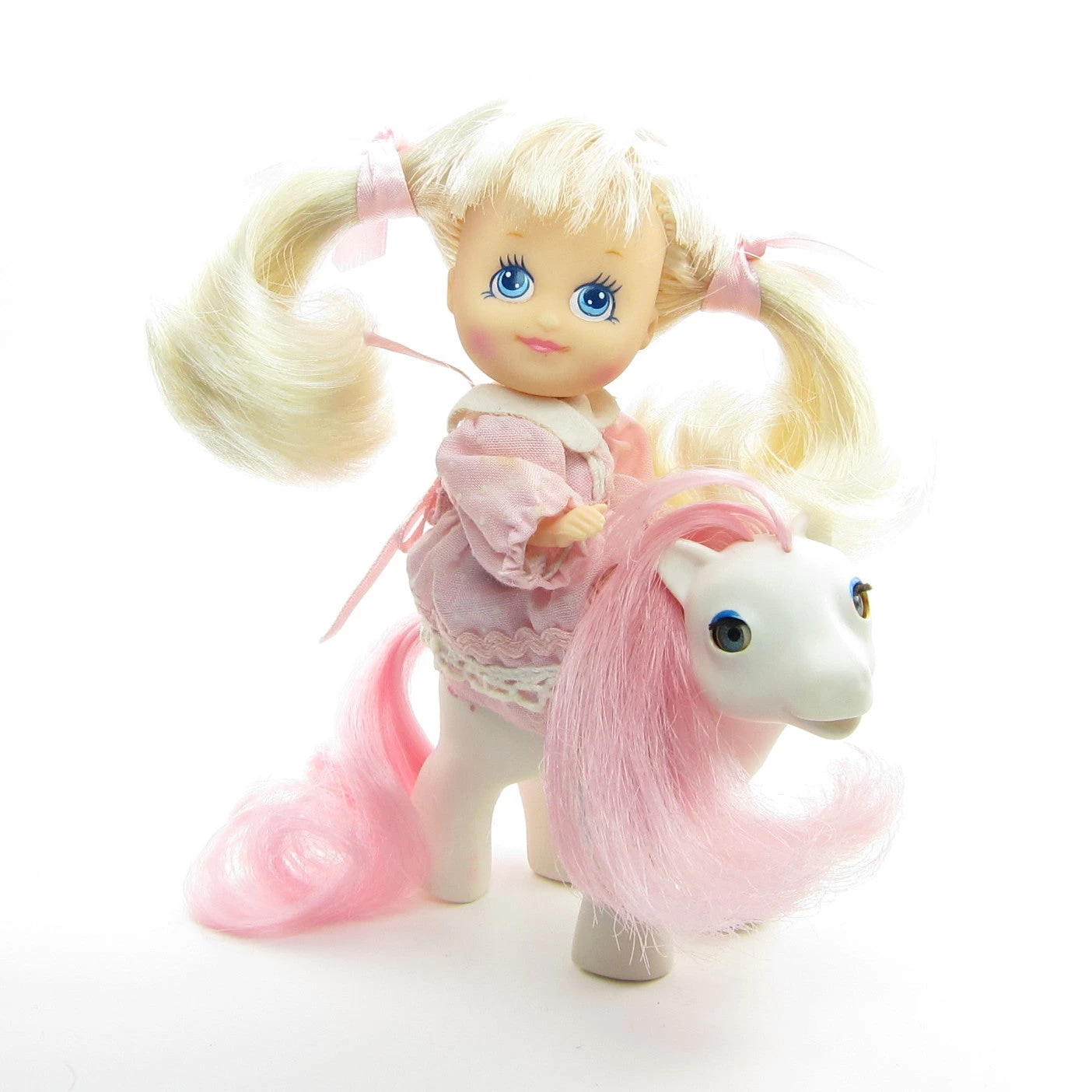 This vintage G1 My Little Pony set from in Year 4 is Molly and Baby Sundance. It includes a white pony, Baby Sundance, and her human friend Molly.
