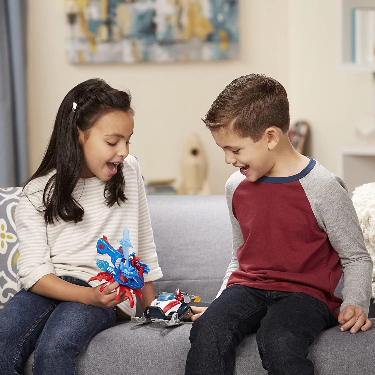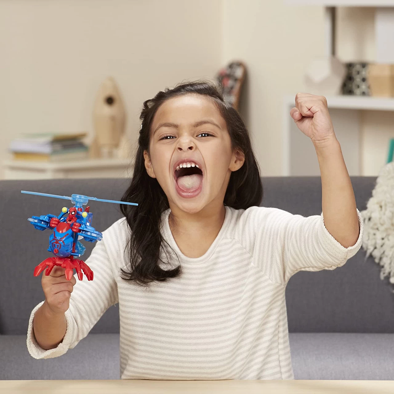 Young heroes can imagine Spider-Man jumping into his Jet-Copter and soaring above the city streets with his eye on the action, moving in to save the day. Sized right for small hands, this Spider-Man figure gets a crime-fighting boost with removable arms that snap on and off. Imagine the Spider-Man figure saving the day by soaring to the rescue in his Jet-Copter! Kids can also power up Spider-Man’s vehicle by placing the powered-up Spider-Man figure inside.Â