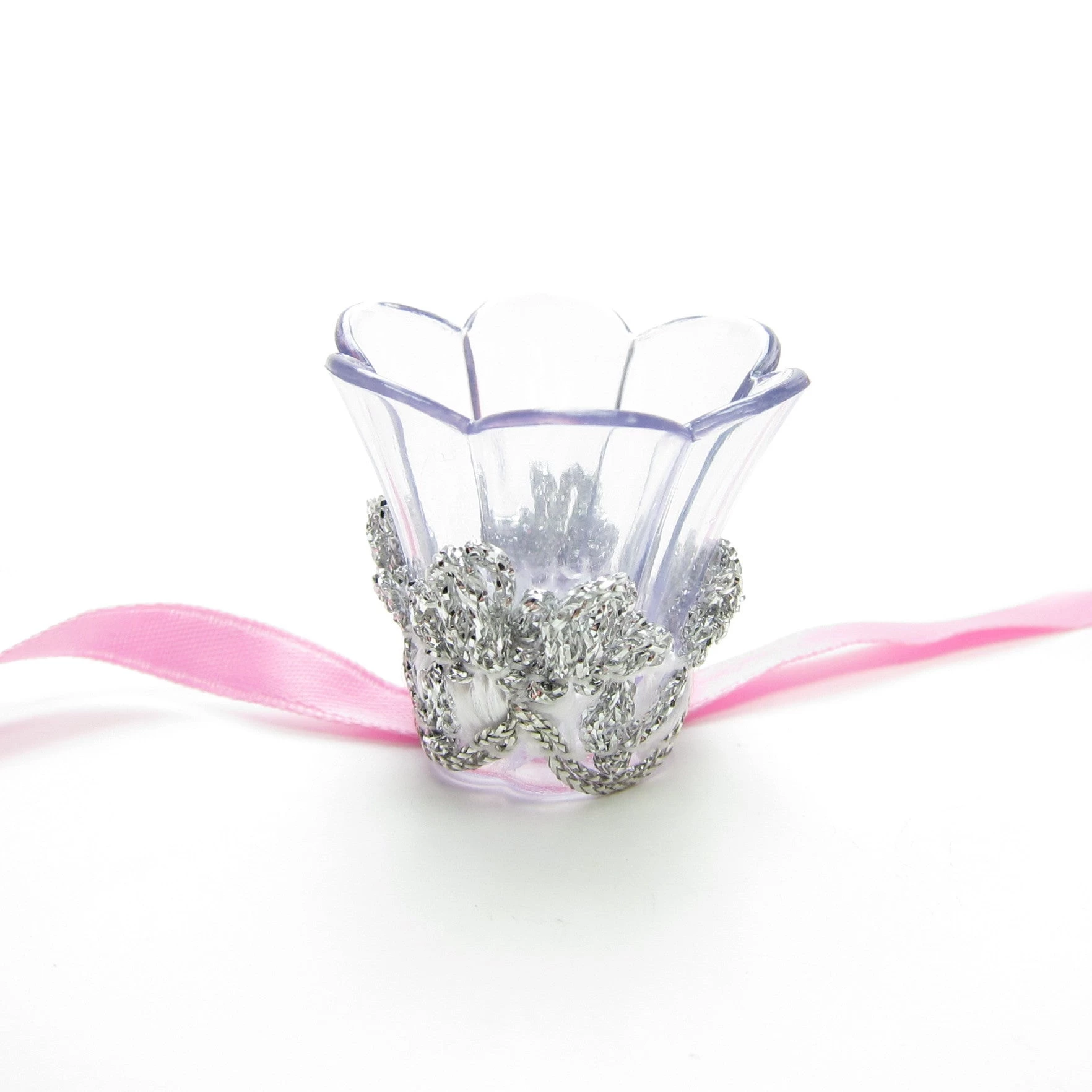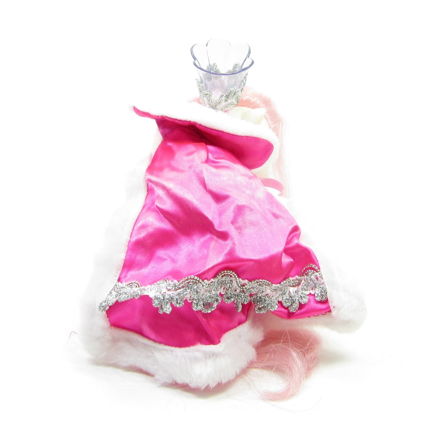 The crown is made of clear plastic with silver fabric trim around the bottom, this also matches trim on the pony’s cape.