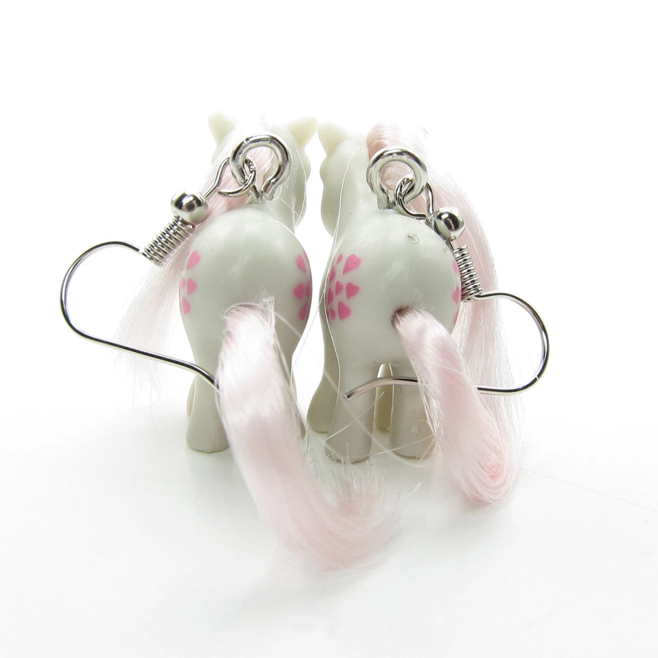 These handmade My Little Pony earrings feature miniature versions of Snuzzle on nickel-free ear wires. The earrings are made from the World’s Smallest My Little Pony toys from 2018. Each pony is just 1 inch (2.5 cm) tall!Â