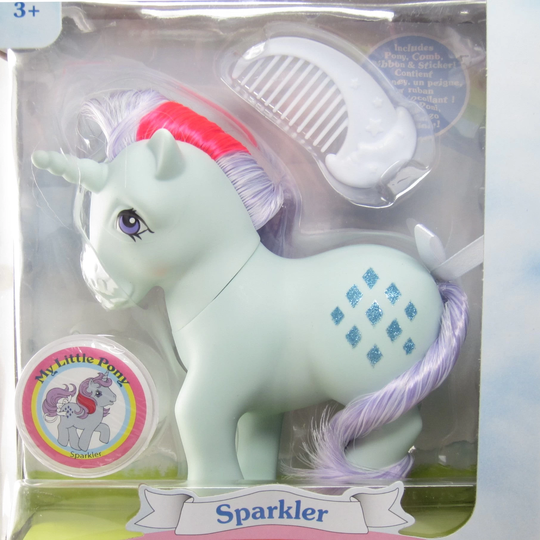 This My Little Pony toy is the Classic Reissue version of Sparkler produced in 2020. She’s from the Unicorn & Pegasus Collection and looks just like the version released in Year 3 of the original My Little Pony line.Â