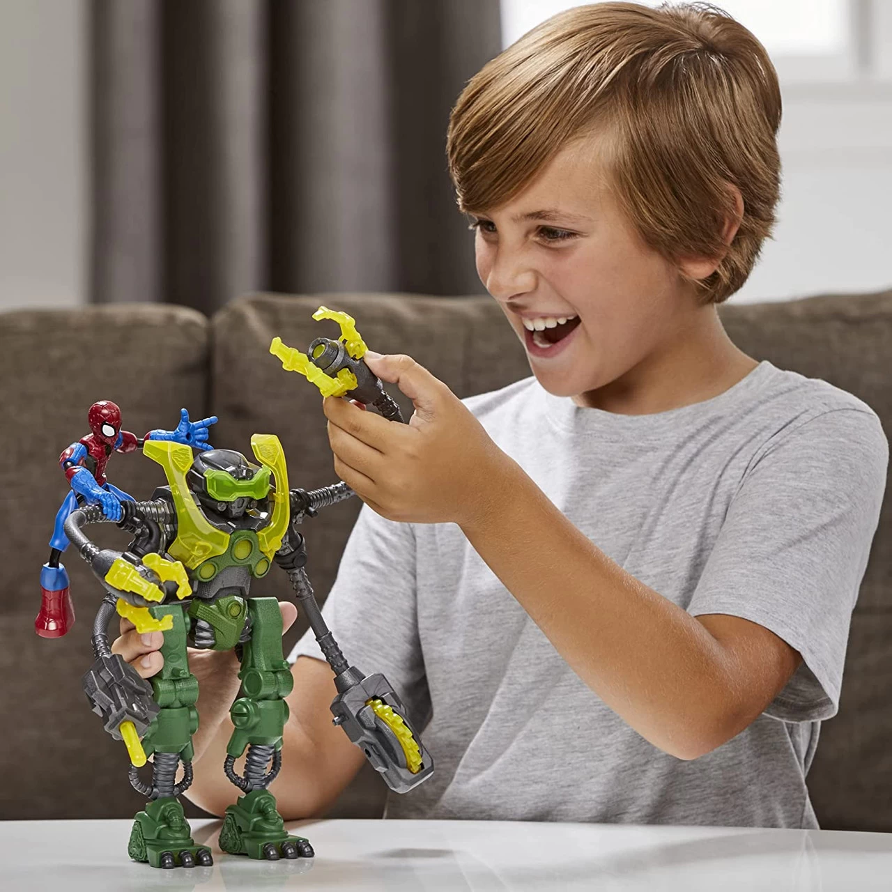 - INCLUDES 6-INCH SPIDER-MAN FIGURE: Ock-Bot has tinted goggles; articulated head, waist and hips; and pegs for attaching figures like included 6-Inch Spider-Man