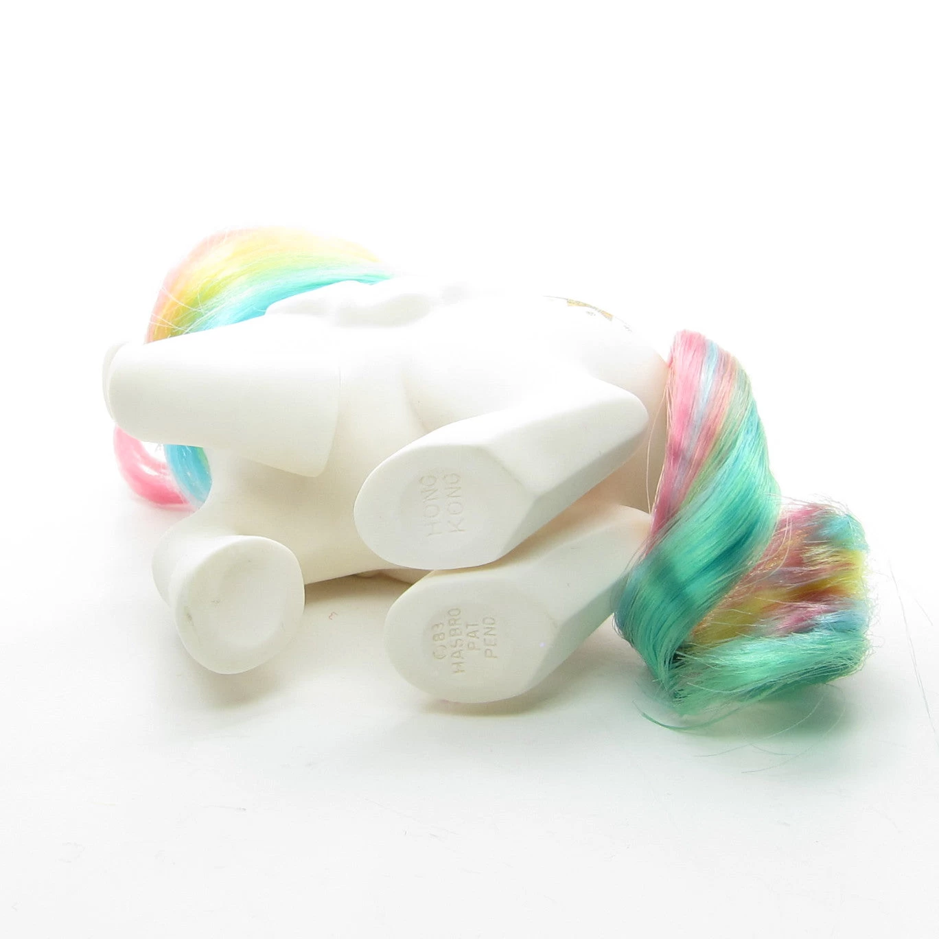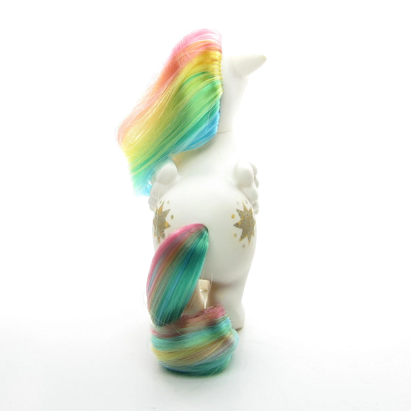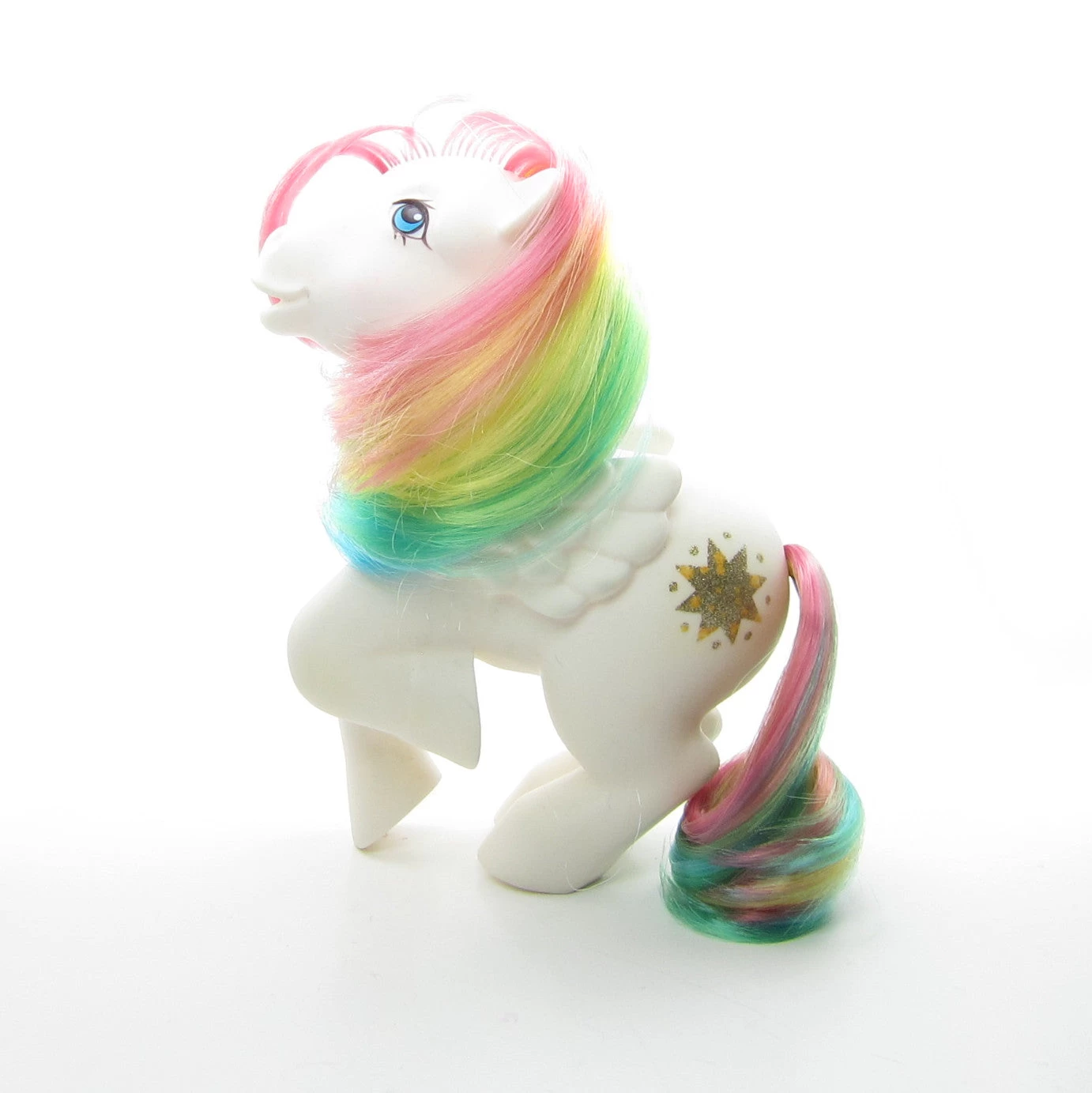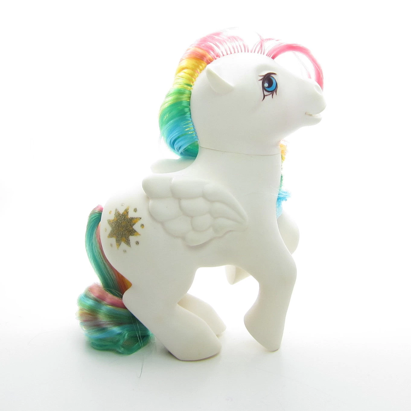 This vintage G1 My Little Pony is Starshine, she’s a white Rainbow Pony that first appeared in Year 2 of the My Little Pony line. She is one of the first pegasus ponies.