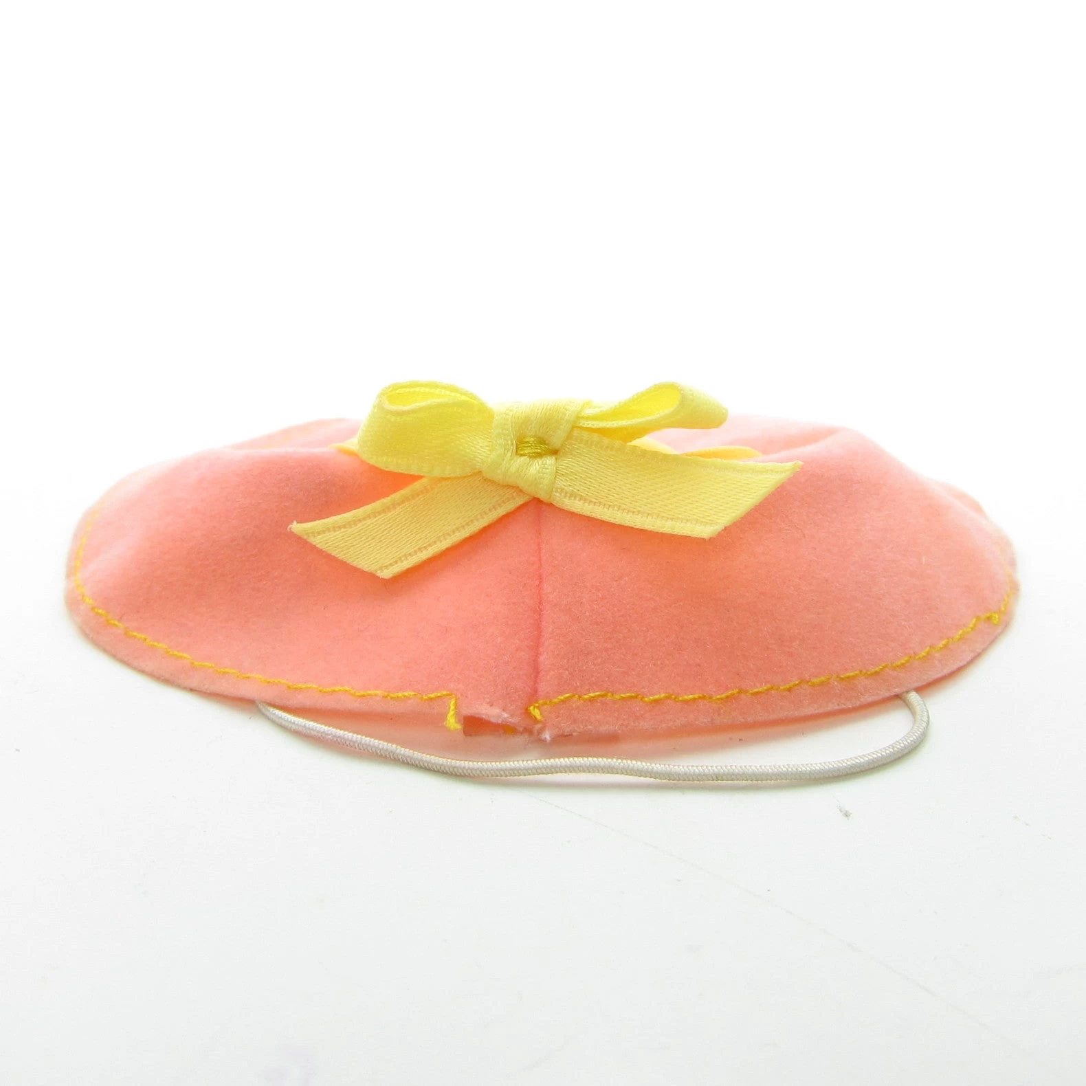 The hat was originally darker pink but has faded to a peach color. The elastic on the outfits has stretched out due to age.